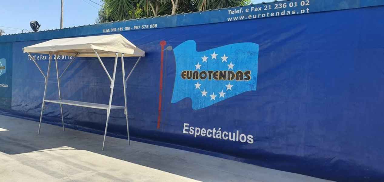 Temos para aluguer e venda bancas desmontáveis com cobertura.